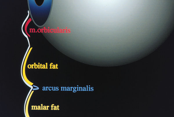 Si comparamos la blefaroplastia superior con la blefaroplastia inferior, observamos dos tendencias contrarias. Mientras la blefaroplastia superior intenta pronunciar la anatomía normal, como la formación del surco palpebral superior, la blefaroplastia inferior tiende a suprimir estructuras normales, como el surco palpebral inferior o el marcado músculo orbicular pretarsal. Este intento de transformar la anatomía normal por razones estéticas hace a la cirugía del párpado inferior más difícil y arriesgada.