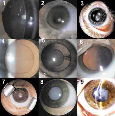 superior. 8: Catarata completa. 9: Catarata traumática.