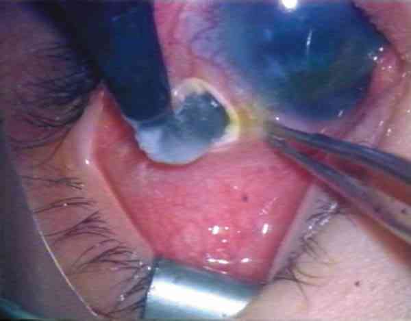 Figura 3. Crioaplicación sobre los procesos ciliares en un globo