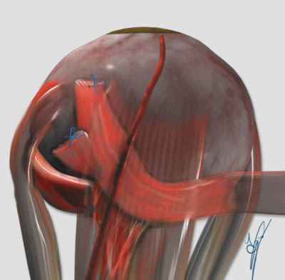 3. Tenectomía posterior del músculo oblicuo superior Se resecan las fibras del tendón situadas más posteriormente y más próximas a la inserción. Así, se debilita el músculo oblicuo superior moderadamente y, en especial, las fibras con función abductora.