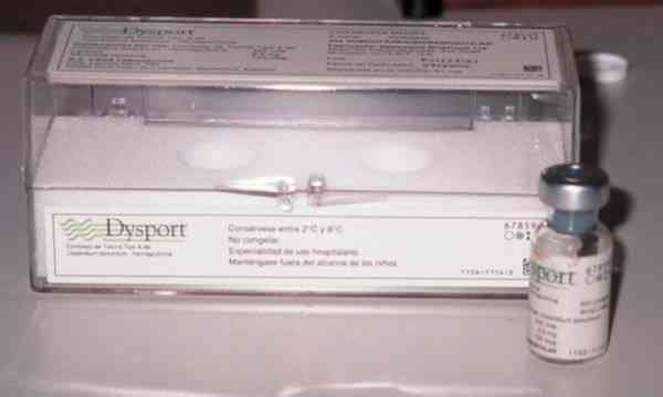FARMACOLOGÍA La toxina botulínica A es una de las 8 neurotoxinas producidas por el clostridium botulinum. Se utiliza ésta porque es más fácil de aislar y cristalizar, por su potencia y por su gran eficacia en el hombre. La molécula tiene dos cadenas, una ligera y una pesada, unidas por un puente disulfuro. La subunidad H1 es la que se une a la terminación nerviosa, a un receptor específico para la toxina botulínica. La subunidad H2 tiene capacidad antigénica, pero no tóxica (7,74). La TBA actúa sobre cada terminación nerviosa. A los 20 a 90 minutos se produce un proceso de endocitosis de una parte de la TBA y, tras esto, se inhibe la liberación del neurotransmisor (acetilcolina) de las vesículas en la terminación nerviosa. Posteriormente se produce una disminución gradual de los potenciales terminales. En el mercado hay dos tipos de TBA. La primera fabricada fue la tipo Wisconsin, creada por el Prof. Schantz del U.S. Army Chemical Warfare Department, actualmente comercializada por el Laboratorio Allergan (Botox) (72). Posteriormente, el Laboratorio Porton desarrolló la toxina «Porton Down» (Dysport) (61), actualmente comercializada por el laboratorio Ipsen Pharma. Las dos TBA se purifican por técnicas ligeramente distintas y, aunque ambas tienen semejante dosis letal media o DL/50, en la práctica clínica tiene mayor toxicidad la de tipo Wisconsin, de manera que 1 unidad Botox equivale a 4 unidades Dysport (70). La TBA se distribuye congelada y así puede durar hasta 3-4 años. Para inyectarla, se reconstituye con solución salina. Se aconseja utilizarla en las primeras 6 horas, ya que, posteriormente, empieza a perder actividad. De todas formas, hay estudios en los que se demuestra que se puede mantener durante 15 días en la nevera sin que pierda eficacia. Otros encuentran una disminución progresiva de la potencia a partir de las 12 horas de la elaboración de la dilución, siendo la pérdida de aquélla, a las dos semanas, del 68,9% (30) (figuras 1 y 2).