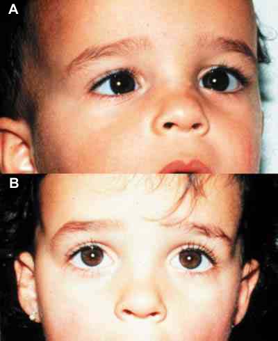 • En las endotropías de los cuadros sensoriales (catarata congénita unilateral, patología del nervio óptico), aconsejamos inyección de TBA. No hay mucha experiencia al respecto. Aunque las series publicadas son muy pequeñas, puede presentar ventajas frente a la cirugía en niños, aunque parece que el ángulo residual es inestable. • En las endotropías de los niños con déficit psicomotor o enfermedades sistémicas tiene también su utilidad, ya que la evolución de la endotropía es muy variable en el tiempo. En estos cuadros la actitud terapeútica depende del tipo de estrabismo y del nivel de afectación físico y psíquico. La técnica de inyección es semejante a la de las formas congénitas. Las inyecciones son también bimediales. La dosis suele ser algo inferior y, en general, precisan menor número de inyecciones (repeticiones). En los adultos, la inyección se tolera peor. La diplopía y los problemas de proyección perturban más que en los niños. Por esta razón se administra la toxina en un solo ojo. También es importante revisar la refracción una vez que están alineados, para evitar la recidiva de la desviación (43).