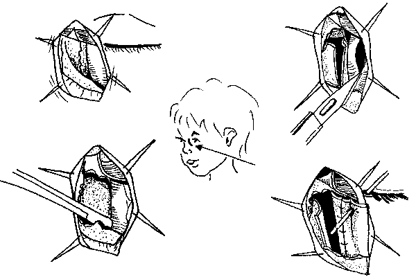 han extirpado la carúncula, a través de la fosa lagrimal y hasta el meato
