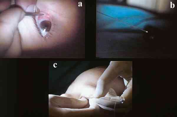 La última fase de la cirugía comprende el sondaje de ambos canalículos