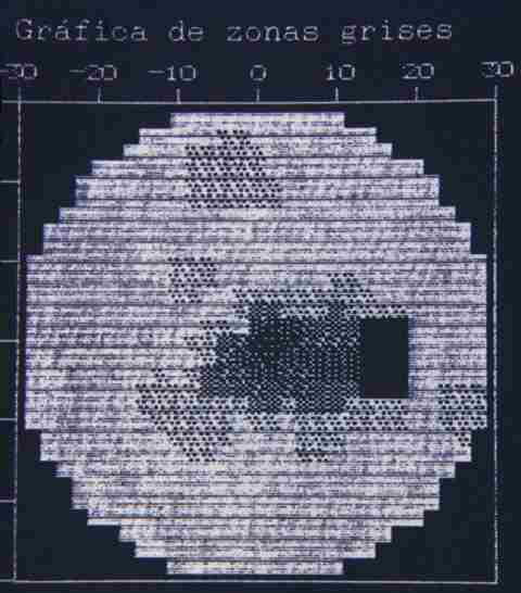 CASO 1. CAMPO VISUAL OD CON ESCOTOMA CENTROCECAL Y REDUCCIÓN CONCÉNTRICA DEL CAMPO.