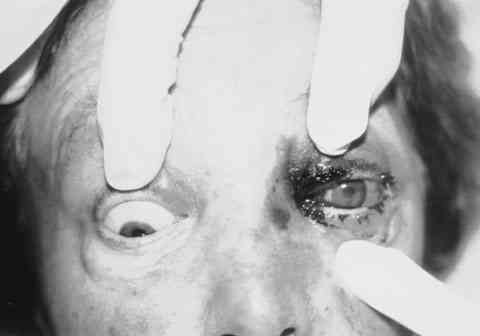 AUSENCIA DE MOTILIDAD DEL OJO AFECTADO EN LA MIRADA HACIA ABAJO.