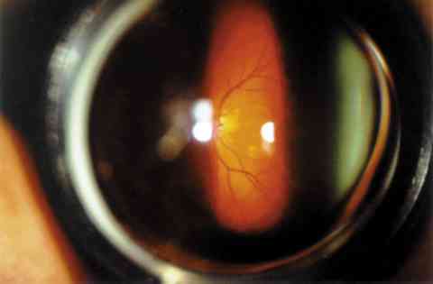 FONDO DE OJO IZQUIERDO. ATROFIA FOCAL DEL EPITELIO PIGMENTARIO.