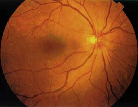 FONDO OD: MÁCULA DE ASPECTO GRANULAR, BORROSIDAD DE PAPILA.