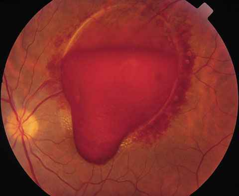 HEMORRAGIA SUBHIALOIDEA MACULAR MASIVA OI.