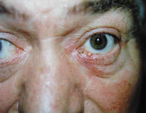 CASO 4. ASPECTO INMEDIATO TRAS LA FOTOCOAGULACIÓN. SE OBSERVA TAMBIÉN UN ORZUELO INTERCURRENTE EL DÍA DE LA LASERAPLICACIÓN.