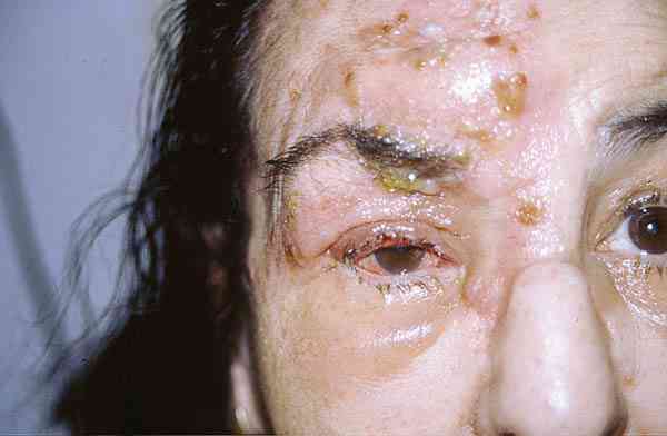 HERPES ZOSTER OFTÁLMICO (V1). DÍA 10 DEL TRATAMIENTO CON VALACYCLOVIR: DOLOR LEVE, NO HAY LESIONES DÉRMICAS NUEVAS.