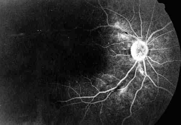 ÁREAS DE NO PERFUSIÓN CAPILAR SEGUIDOS DE DIFUSIÓN Y EFECTOS PANTALLA, CORRESPONDIENTES A LA PRESENCIA DE LOS EXUDADOS Y LAS HEMORRAGIAS.