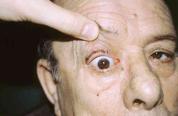 PROPTOSIS DE 4 MM HACIA ABAJO.