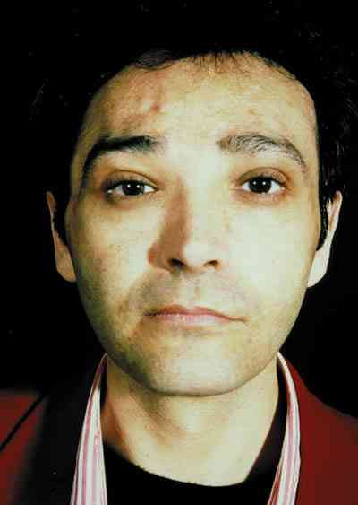 FACIES ACTUAL ANTEROPOSTERIOR Y CON LIGERA ROTACIÓN RESPECTIVAMENTE. NÓTESE ABULTAMIENTO EN LA ZONA GLABELAR A PESAR DE LA OSTEOPLASTIA FRONTAL.