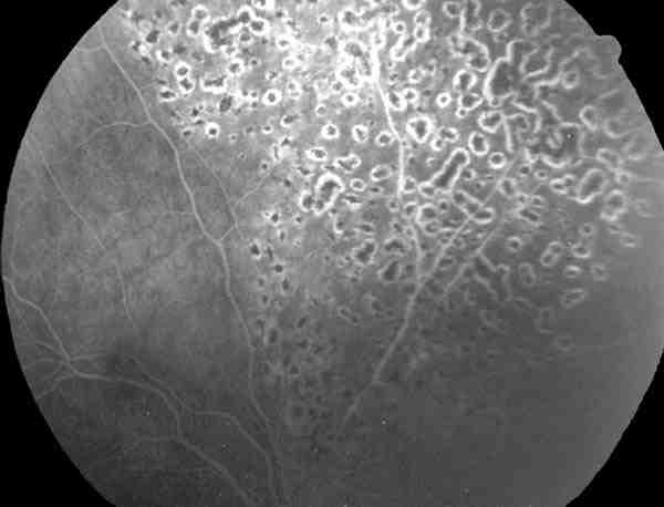 AFG DEL MISMO CASO QUE FIGURA 7, REGRESIÓN DE NEOVASCULARIZACIÓN TRAS FOTOCOAGULACIÓN.