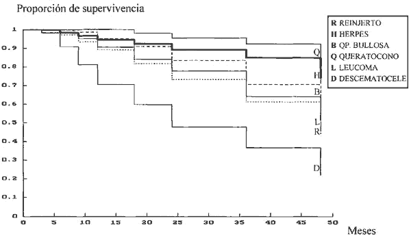 CURVAS DE SUPERVIVENCIA DEL INJERTO CORNEAL SEGÚN LAS DIFERENTES PATOLOGÍAS.