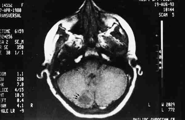 TAC SIN CONTRASTE: IMAGEN HIPODENSA A NIVEL DE HEMISFERIO CEREBELOSO DERECHO.