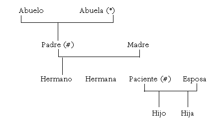 Al estudiar a los familiares, para determinar la sintomatología acompañante de las escleras azules y el patrón de herencia familiar, se encuentra que la abuela presentaba sordera y escleras azules; tanto el paciente como su padre presentaban sordera, fragilidad ósea y escleras azules (esquema 1).