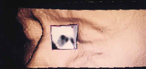 TCH CON RECONSTRUCCIÓN 3D. SUBSTRACCIÓN DE PARTES BLANDAS EN LA ZONA QUIRÚRGICA Y RMP LOCAL EN LA QUE SE OBSERVAN LAS ESTRUCTURAS ÓSEAS Y EL ORIFICIO DE OSTEOTOMÍA.