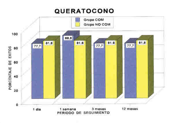 DIAGRAMA DE BARRAS DEL PORCENTAJE DE ÉXITOS EN AMBOS GRUPOS (QUERATOCONO).