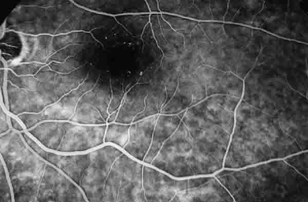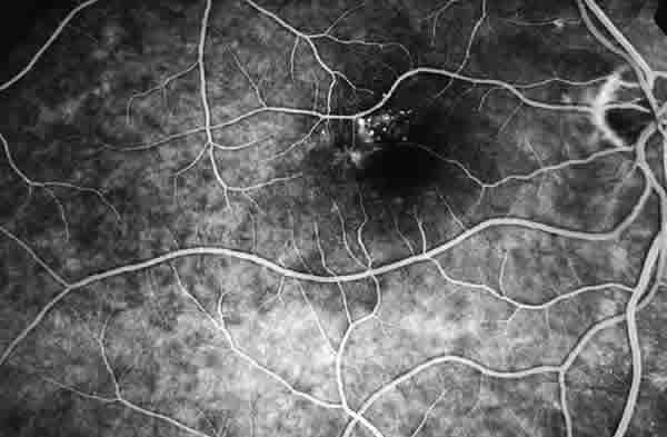 CASO 1. AFG AMBOS OJOS, TIEMPO PRECOZ. EVIDENCIA LAS TELANGIECTASIAS CAPILARES LOCALIZADAS PRINCIPALMENTE EN ZONA TEMPORAL A FÓVEA.