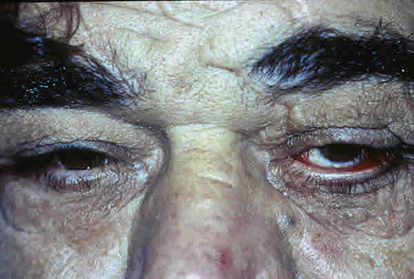 ECTROPINIZACIÓN DEL PÁRPADO INFERIOR IZQUIERDO, PTOSIS DEL PÁRPADO SUPERIOR IZQUIERDO DE 2,5 MM, CICATRICES DEL ACCIDENTE PREVIO CON PESTAÑAS TRIQUIÁSTICAS EN LA UNIÓN DEL TERCIO MEDIO CON LOS DOS EXTERNOS Y VERTICALIZACIÓN DE LAS PESTAÑAS.