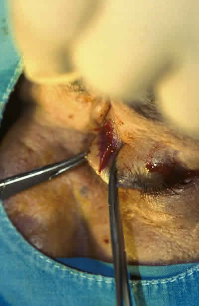 ESCISIÓN DE PENTÁGONO TARSAL MEDIAL DE 10 MM EN ZONA DE PESTAÑAS TRIQUIÁSICAS Y ACORTAMIENTO DE 5 MM LATERALES EN EL PÁRPADO SUPERIOR MÁS CANTOPLASTIA.