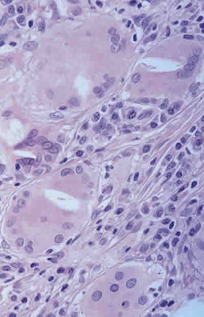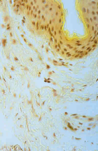 REACCIÓN GIGANTO-CELULAR A CUERPO EXTRAÑO A NIVEL TARSAL REACCIÓN INFLAMATORIA CRÓNICA SUBCONJUNTIVAL EN LA TINCIÓN CON HEMATOXILINA-EOSINA Y PÉRDIDA Y FRAGMENTACIÓN DE FIBRAS ELÁSTICAS A NIVEL DE LA DERMIS EN LA TINCIÓN CON ORCEÍNA.