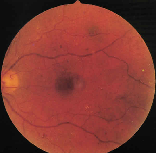 FONDO DE OJO IZQUIERDO (EVOLUCIÓN). UN MES MÁS TARDE LA DESAPARICIÓN DEL EXUDADO FUE COMPLETA.