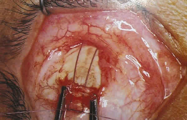 La retroinserción de la conjuntiva debe realizarse al mismo tiempo para evitar tracciones de la misma.