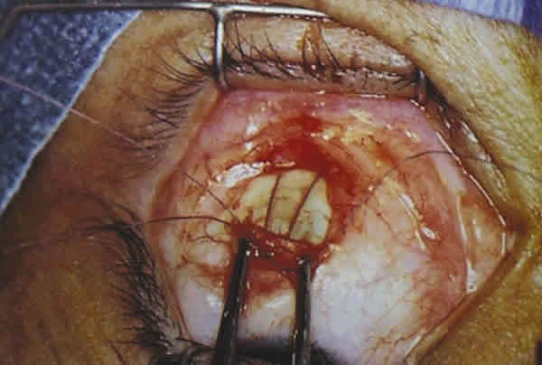 Cicatrices viciosas y antiestéticas por la sutura de la cápsula de Tenon junto con la conjuntiva. Los granulomas, los quistes acuosos conjuntivales, dehiscencia de la sutura conjuntival.