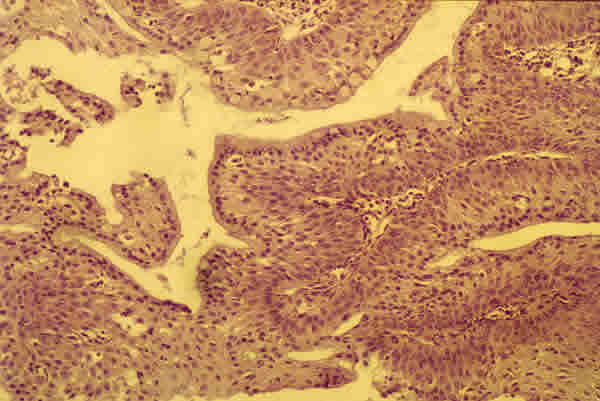 Fig. 2. Sección histológica del papiloma escamoso. A destacar los centros