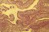 fibrovasculares rodeados por un epitelio escamoso acantósico (H-E 100x).