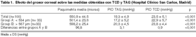 Numerosos estudios han corroborado posteriormente estos resultados y la paquimetría se ha confirmado como una de las principales fuentes de error en las mediciones de la TAG (3-5). El estudio sobre el tratamiento de la hipertensión ocular (6,7), ha vuelto a poner de manifiesto recientemente la importancia de la paquimetría, otorgándole los autores de este estudio un valor predictivo en cuanto a la conversión de hipertensión ocular a glaucoma.