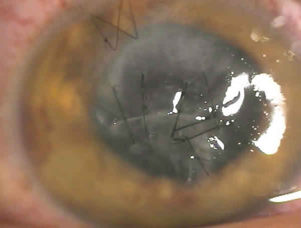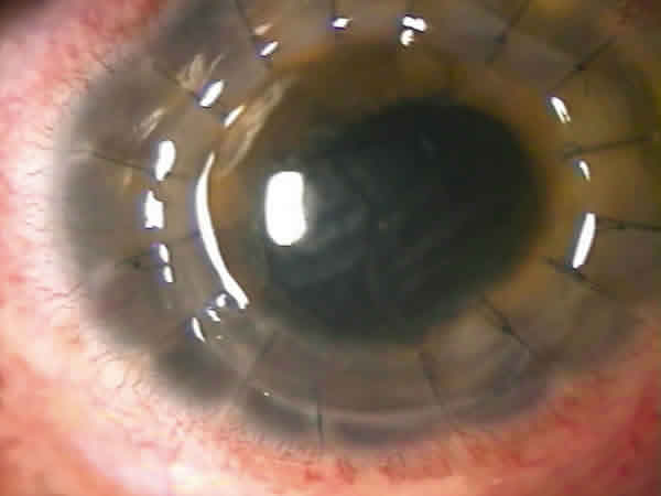 Fig. 2. Ojo derecho a los 8 días de la queratoplastia penetrante.