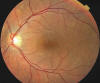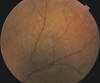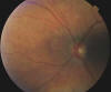 Fig. 5. Ojo izquierdo. Nódulos de Dalen-Fuch en media periferia de la retina a