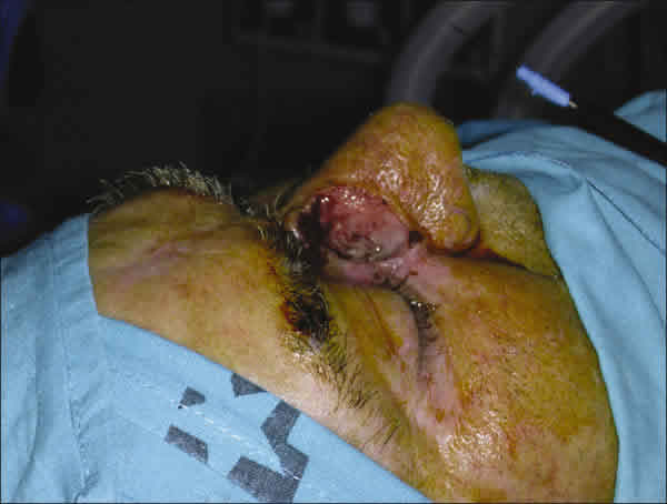 Fig. 1. Aspecto extremo de la última recidiva tumoral. Se aprecia erosión hueso