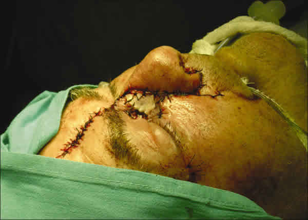 Fig. 5. Aspecto del paciente tras el cierre, obsérvese el colgajo frontal y el