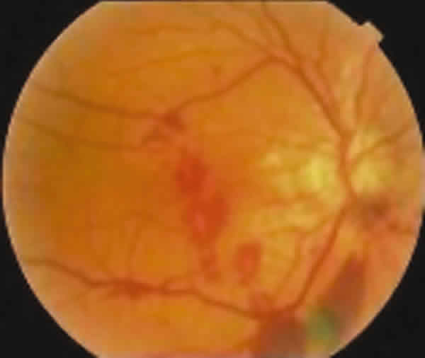 Fig. 1. Fondo de ojo derecho. Hemorragias