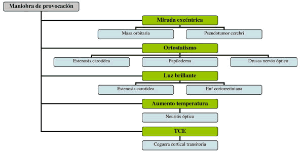 Típicamente, el papiledema se acompaña de oscurecimientos transitorios de visión de segundos de duración.