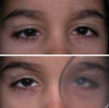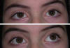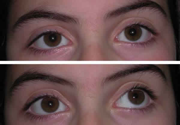 2. Retracción palpebral: principalmente en el párpado superior, secundaria a la retroinserción amplia de los rectos superiores, sumado al esfuerzo de elevación que realiza el sujeto, lo que acentúa el problema. Para tratar de evitarlo, se aconseja que deben seccionarse las bandas fibrosas que existen entre el músculo recto y la aponeurosis del elevador a 10-12mm de la inserción del RS. Lo mismo puede ocurrir en el párpado inferior en la retroinserción de los rectos inferiores (fig. 15).