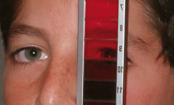 Fig. 4: Filtro rojo. Con el OD fijador, el ojo izquierdo
