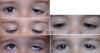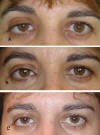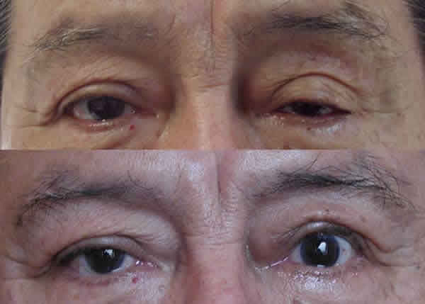 Fig. 10. Ptosis oblicua antes y después de la cirugía. A: Mayor en lado
