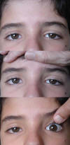 Fig. 7. Portadora de lentes de contacto rígidas. A: Ptosis y elevación de las