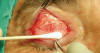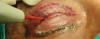 Fig. 26. Incisión de piel y orbicular, con punta de Colorado, a todo lo largo de