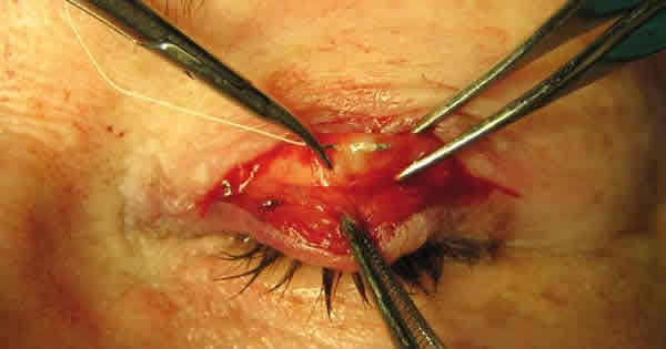 La técnica quirúrgica no presenta dificultades si se conocen bien los planos anatómicos, pues se trata solamente de reinsertar la aponeurosis en la cara anterior del tarso, llevándola a su posición original. Nunca aquí debemos resecar la aponeurosis porque de lo contrario conseguiríamos una hipercorrección.
