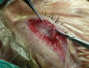 13. Disección cuidadosa de la aponeurosis teniendo cuidado de no dañar la arcada vascular periférica, pues sangra efusivamente y resta belleza a la cirugía.