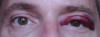Fig. 13. A: Ptosis que el paciente corrige con un esparadrapo traccionando de