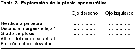 Recogeremos en la historia clínica una tabla resumen con las medidas más importantes (tabla 2). También aconsejamos recoger documentación gráfica de cada paciente, imprescindible realizar al menos un dibujo esquemático de la situación de los párpados y siempre realizar fotografías, en las posiciones diagnósticas. Cualquier detalle de los párpados será de gran valor. Estudiar las fotografías antes y después de la cirugía aporta muchas enseñanzas. Nosotros hacemos y guardamos fotografías de todos y cada uno de los pacientes que se van a operar. Volvemos a realizar fotos en el postoperatorio inmediato, una o dos más a lo largo del primer mes y, por último, en el momento del alta.