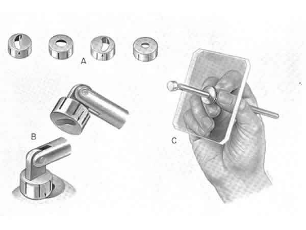 Fig. 1: Aplicador de Swanberg (1948). El radio D está en el pequeño cilindro